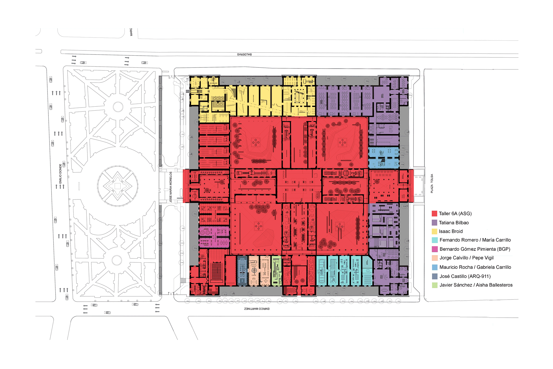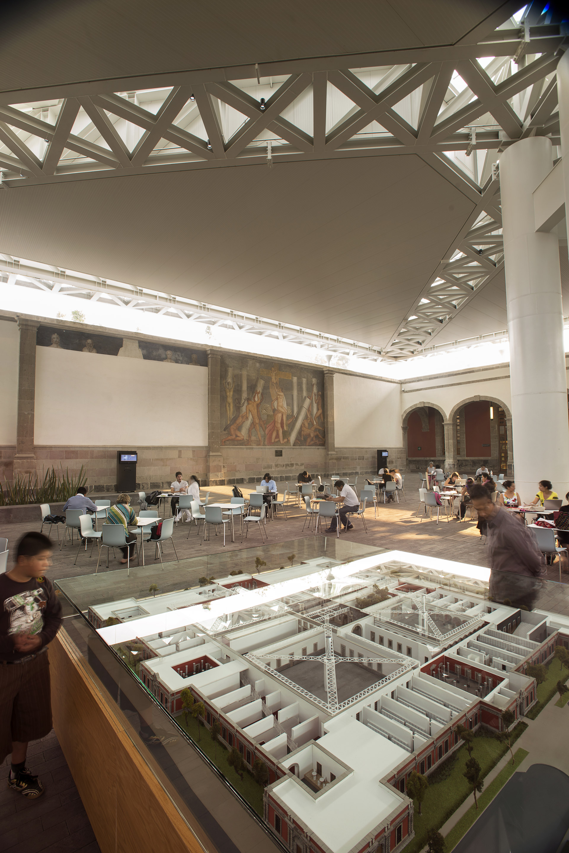 a) reorganiza el acomodo programático de las diferentes funciones para hacerlo más eficiente y lógico; b) rescata el carácter del edificio histórico al retomar el esquema de patios que tenía originalmente y restaura sus componentes, así como restituye las circulaciones continuas, tanto perimetrales como del eje norte-sur; c) mejora las condiciones de iluminación y ventilación natural para lograr un mayor aprovechamiento de los recursos energéticos; d) atiende los requerimientos de accesibilidad universal mediante una topografía de piedra volcánica continua; e) se actualiza la infraestructura en general para ponerla al día.
