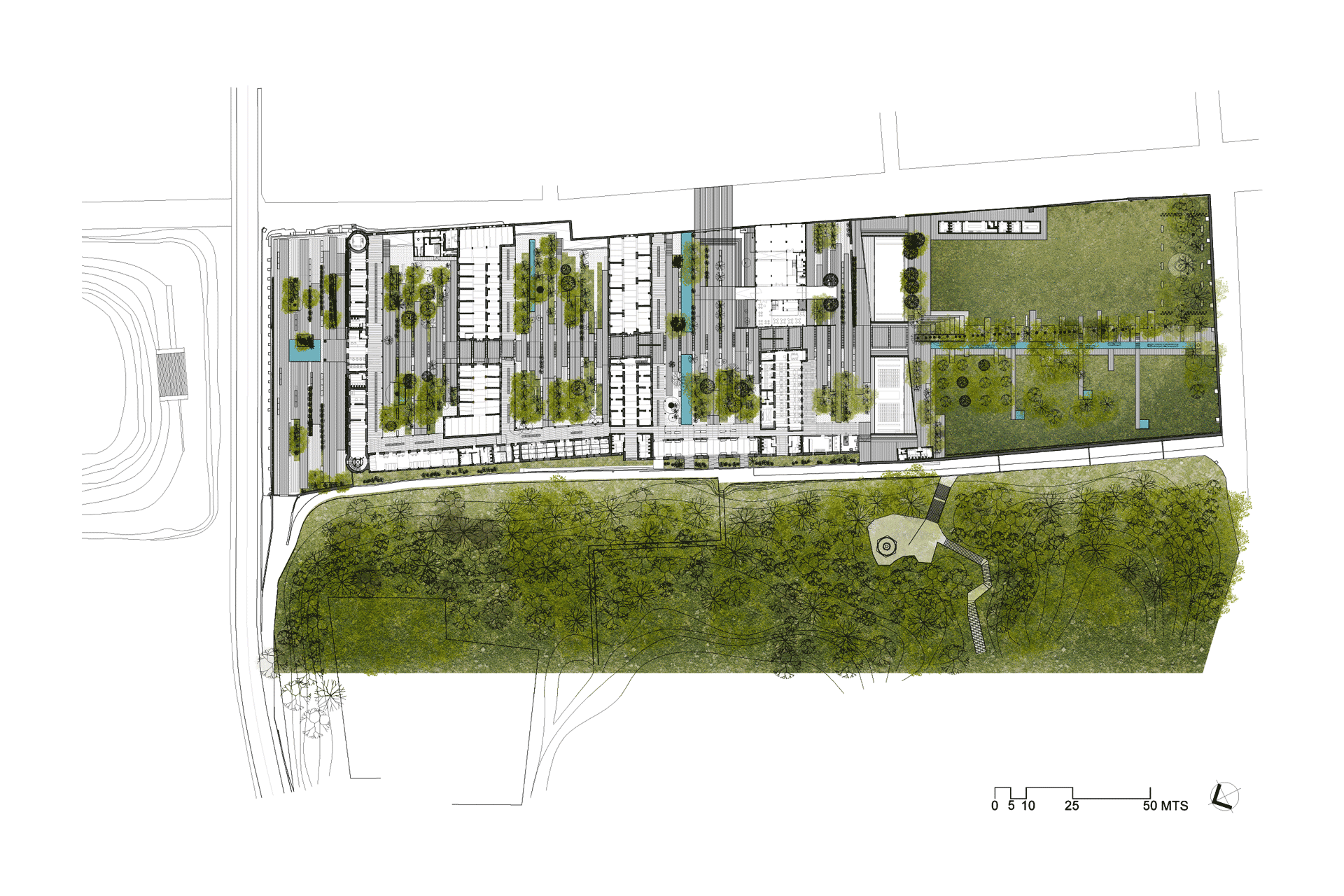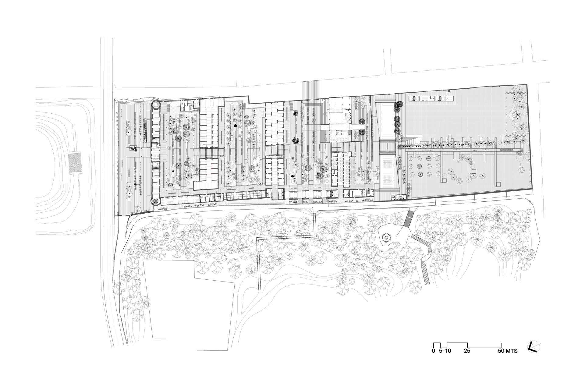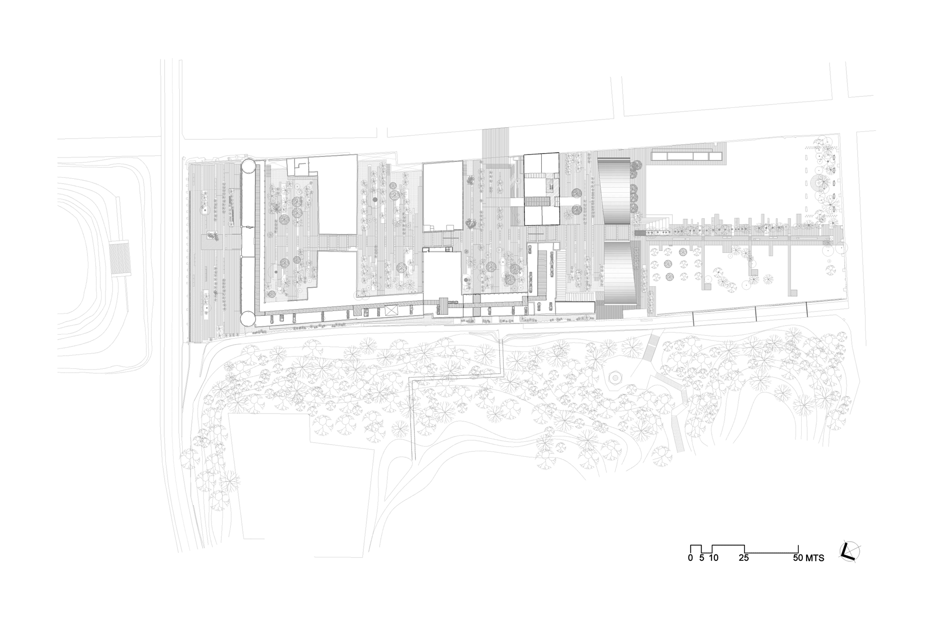 Se respetaron los pabellones del proyecto original del Porfiriato, que se recuperan, intervienen y restauran para espacios de uso museográfico y cultura además de que se agregan dos nuevos solucionados con unas bóvedas de tabique espectaculares , solucionados en más bóvedas de tabique espectaculares. La aportación más significativa del proyecto es una nueva plaza de acceso a un costado del parque (zona arqueológica) y que conecta directamente con el eje de la pirámide y la iglesia del Rosario; ahí se encuentran la arquitectura prehispánica, la colonial, la porfiriana y la contemporánea.
